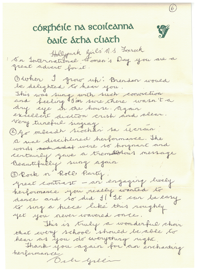 The School Choir performed beautifully at Córfheile na Scoileanna in the National Basketball Arena in Tallaght last Wednesday.