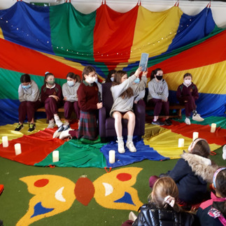 A special reading area was set up in our tunnel as our 6th Classes took turns to read to Junior Infants, Senior Infants and 1st Class.